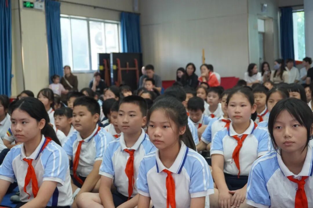 表演中,同学们配合默契,歌声时而激昂高亢,时而婉转深情。不少中队还融入了朗诵、舞蹈等创意形式,搭配精心设计的动作与道具,将歌曲内涵展现得淋漓尽致。舞台上,他们表情自然大方,精神风貌昂扬向上;舞台下,观众们安静欣赏,每首歌结束后都报以热烈掌声,现场氛围庄重而热烈。